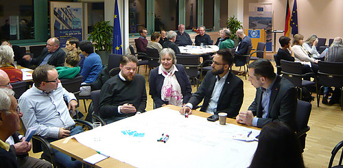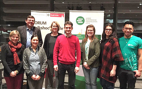 Eine erfreulich hohe Anzahl von über 60 Teilnehmerinnen und Teilnehmern war im Januar der Einladung der Europa-Union Köln in das VHS-Forum im Rautenstrauch-Joest-Museum gefolgt, über das etwas sperrige Thema Finanzen der EU zu diskutieren. Nach der Begrüßung durch Henrike Viehrig und einer allgemeinen Einführung durch Hans Stein besuchten die Teilnehmerinnen und Teilnehmer vier Stationen, die sich mit den Themen Verteidigung, Soziales und Jugendarbeitslosigkeit, EU-Gelder in NRW und Landwirtschaft beschäftigten.