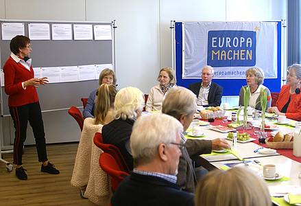 Der EUD-Kreisverband Steinfurt e.V. präsentierte am Sonntag, 17. Februar 2019 in der Familienbildungsstätte (FBS) in Rheine „Europa mit und in kleinen Häppchen“. Unter Leitung der Kreisvorsitzenden Dr. Angelika Kordfelder tauschte man in überschaubarer Runde bei einem Pott Kaffee und frischen Brötchen Ideen, Informationen und Denkanstöße für ein gemeinsames Europa aus.