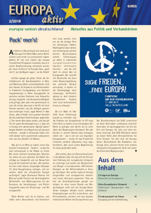Für die Europa-Union Deutschland ist 365 Tage im Jahr Europa-Tag. Aber jetzt im Mai wird gefeiert: Zur Europawoche 2018 werden wieder Tausende Ehrenamtliche und Europa-Profis unterwegs sein, um auf Straßen und in Sälen für ein vereintes Europa zu werben, Fragen zu beantworten, Zukunftsmodelle für die EU zu diskutieren. Im Einsatz ist dann auch die Sonderausgabe der Mitgliederzeitschrift Europa aktiv. In der aktuellen Ausgabe gibt es ein Special zum Europaangebot auf dem Deutschen Katholikentag, die neue Rubrik "Mein Europäischer…