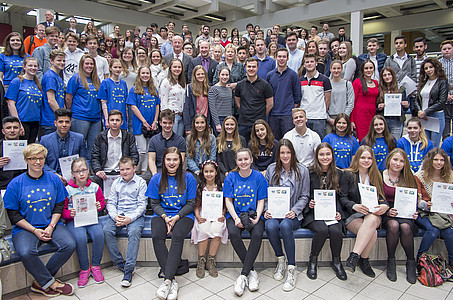 Am 11. Mai wurden im Wuppertaler Carl-Fuhlrott-Gymnasium die diesjährigen Preisträger des 64. Europäischen Wettbewerbs aus dem Regierungsbezirk Düsseldorf geehrt. In Anwesenheit der Schulministerin Sylvia Löhrmann wurden mehr als 30 Schülergruppen in verschiedenen Kategorien und Altersklassen für die eingereichten Arbeiten zum Thema „In Vielfalt geeint“ ausgezeichnet.