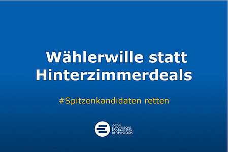 Die Staats- und Regierungschefs wollen das Rad der Demokratie in Europa wieder zurückdrehen. Da machen wir nicht mit! Wir unterstützen ausdrücklich die Kampagne unserer Jugendorganisation, der Jungen Europäischen Föderalisten (JEF), die sich dafür einsetzen, auch bei zukünftigen Wahlen zum EU-Parlament Spitzenkandidaten der Parteien zu benennen.